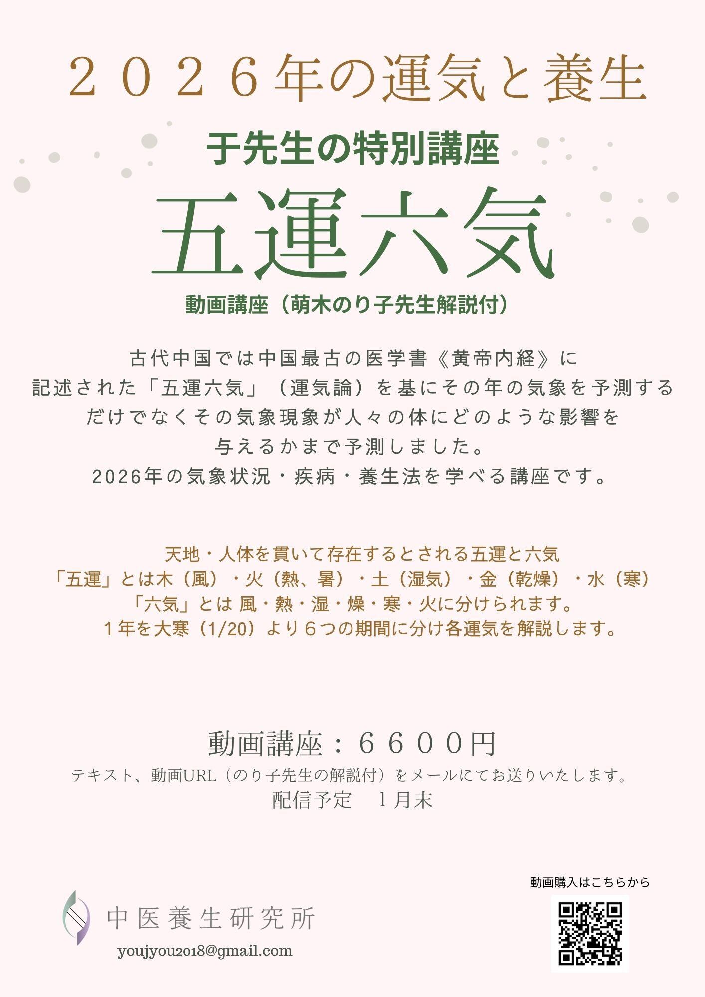 2026年の気象状況・疾病・養生法を学べる講座です。
